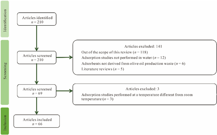 • Olive oil is a nutritionally and economically valuable product whose global production has steadily increased, alongside the generation of large volumes of solid and liquid waste. Olive oil mill wastewater and solid residues such as olive pomace and olive stones have become major environmental concerns due to their high pollutant load. At the same time, these byproducts offer an opportunity: their valorization as low-cost, sustainable adsorbents for water treatment. Addressing this dual environmental challenge, this review provides a comprehensive and systematized synthesis of the current state of research on the use of olive oil production residues for water decontamination via adsorption. Specifically, the study maps the types of byproducts used, their target pollutants, removal efficiencies, and adsorption capacities. Unlike previous reviews, this work emphasizes studies that apply raw or minimally processed residues, as well as experiments conducted with real wastewater or under environmentally relevant conditions. The data are presented in a structured and comparative format, highlighting promising results and underexplored combinations. By identifying trends, gaps, and practical applications, this review contributes to advancing the development of circular economy-based, eco-friendly solutions for water pollution control and provides a valuable resource for future research and implementation.