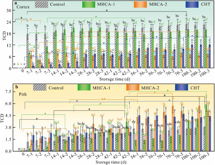 Zhu, Y., Guan, M.J., Jia, Q.D., Wang, G.N., Pan, L.C., Li, Y.J., 2024. Degradation mechanism of cuticular wax composition and surface properties of bamboo culm during storage. Ind. Crops Prod. 214, 118558. doi: 10.1016/j.indcrop.2024.118558