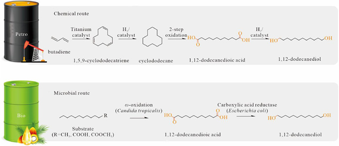 Hsieh, S.C., Wang, J.H., Lai, Y.C., Su, C.Y., Lee, K.T., 2018. Production of 1-dodecanol, 1-tetradecanol, and 1,12-dodecanediol through whole-cell biotransformation in Escherichia coli. Appl. Environ. Microbiol. 84, e01806–17.